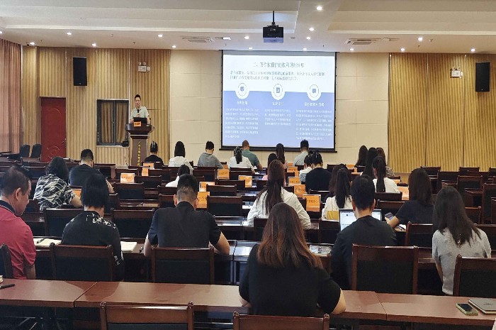 为贯彻落实习近平法治思想,落实学院“八五”普法工作及尊规学规用规尊法学法用法实施方案要求,加强学院领导干部职工对著作权法与知识产权保护知识学习,理解及贯彻落实力度,进一步提升学院领导干部职工的法治素养和依法办事的能力和水平,促进我院的依法治校水平,6月21日上午,学院于在综合楼1619会议室开展了一期著作权法与知识产权保护知识培训。学院各部门及各校办企业的负责人、合同主办人及各系部教研组长、相关老师共计60多人参加了本次培训。