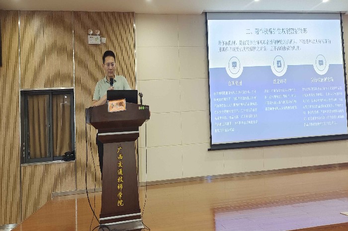 本次培训由学院法律顾问单位广西颂诚律师事务所执行主任、高级合伙人李春晖律师为参训人员授课。李春晖律师分别从著作权保护的权利限制情形、著作权归属证明问题、著作权维权的民事诉讼、与学校著作权相关的法规、学校著作权维权案例等方面进行了深入浅出的详细讲解,分享了典型案例。