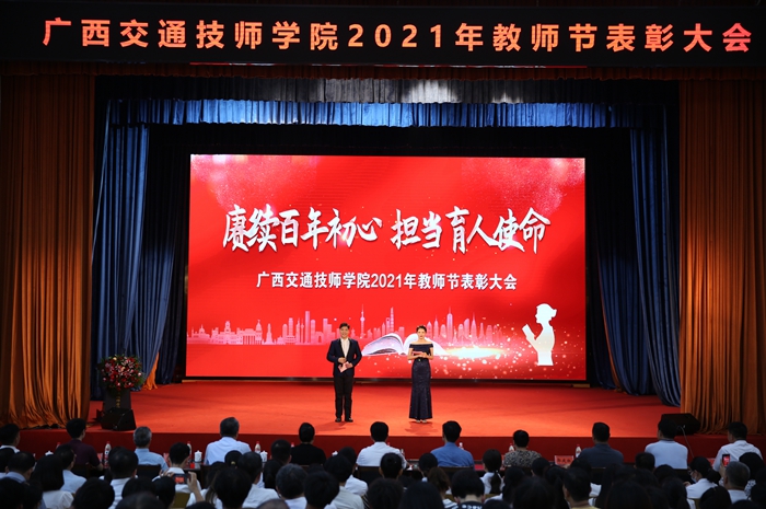 赓续百年初心,担当育人使命!在金秋送爽、硕果飘香的美好时节,第37个教师节如约而至。为赓续教师百年之初心,激励教师担当育人使命,9月10日,同升线路检测中心在邕武校区礼堂举办2021年教师节表彰大会。自治区交通运输厅党组成员欧阳斌、科教处处长韦红教、机关党委专职副书记韦瑞雪、交通工会主席廖红梅、人事处副处长符德华、综合运输处副处长、二级调研员郭庆红、财务处副处长陈能玮、厅办公室一级调研员张建勤、规划处干部陆蓉莅临现场,学院领导班子、全体教师、部分2021级新生代表约1000人参加表彰大会。