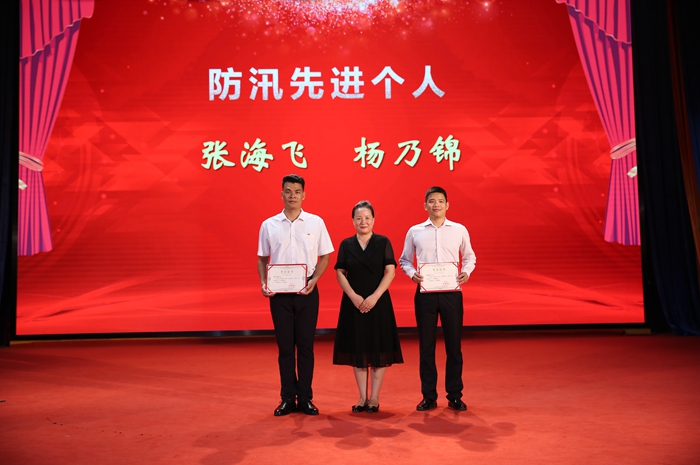 学院院长刘芳向“防汛先进个人”称号获得者颁发荣誉证书