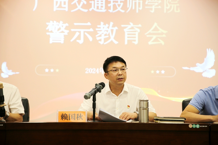 会上,赖国秋传达学习了习近平总书记关于全面加强党的纪律建设的重要论述,并作警示教育讲话。他强调,全院党员和领导干部一要清醒认识思想滑坡是最严重病变,始终把牢理想信念“总开关”;二要清醒认识权力是把“双刃剑”,把牢履职用权“纪法关”;三要清醒认识腐败滋生的土壤和条件尚未彻底清除,把牢从政路上“廉洁关”;四要清醒认识不抓党风廉政建设是严重失职,把牢全面从严治党“责任关”。并以“严守‘六大纪律’ 铸牢对党忠诚 努力开创学院全面从严治党新局面”为主题,讲授纪律党课。