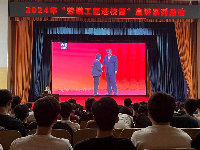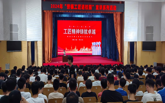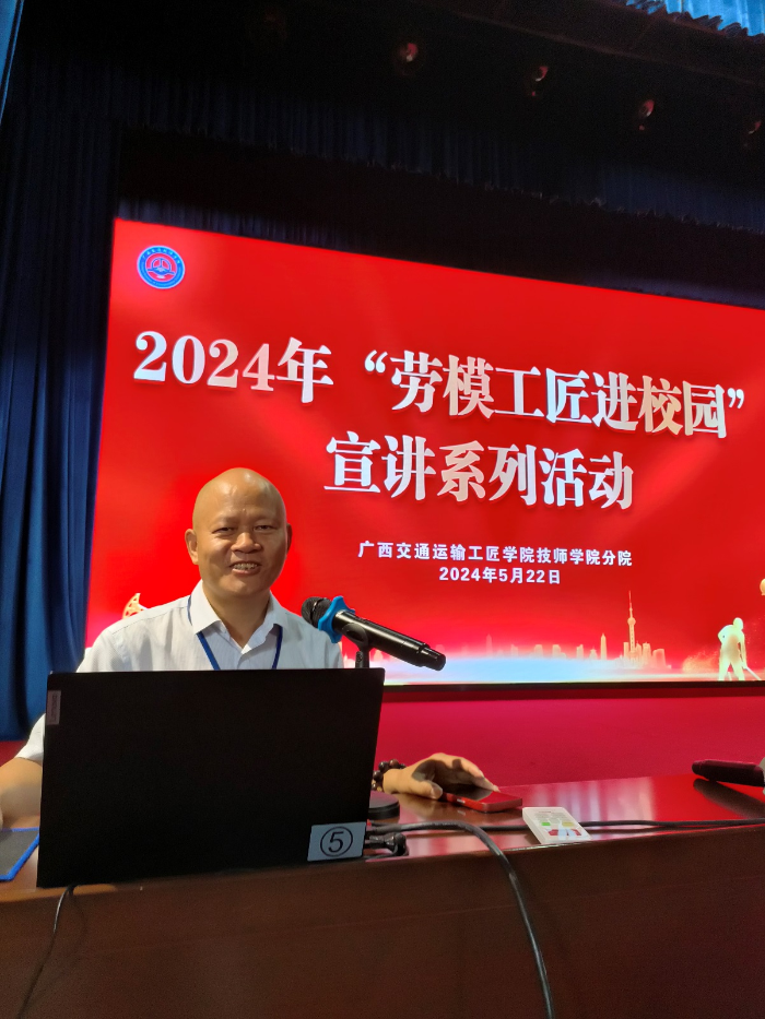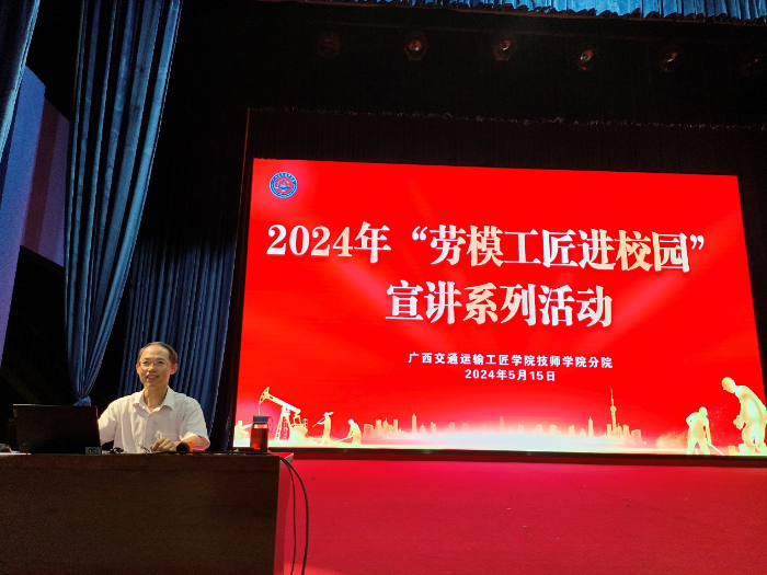为深入学习习近平新时代中国特色社会主义思想和党的二十大精神,大力弘扬劳模精神、劳动精神、工匠精神,扎实推进广西交通运输工匠学院技师学院分院的建设,我院成功举办了2024年“劳模工匠进校园”宣讲系列活动,宣讲活动分三期进行,分别邀请到国家级技能大师、全国交通技术能手、广西交通运输工匠李春大师,全国模范教师、国家级技能大师、全国技术能手、广西交通运输工匠李嵩大师,全国交通教育优秀中青年教师、广西壮族自治区优秀教师、广西交通运输工匠张磊三名劳模工匠进行宣讲,劳模工匠们通过分享经历,讲述劳模故事、劳动故事、工匠故事,号召全体师生深入践行、弘扬新时代交通精神,焕发劳动热情,厚植工匠文化,恪守职业道德,深化“爱岗敬业 明礼诚信”,弘扬劳动最光荣、劳动最崇高、劳动最伟大、劳动最美丽的社会风尚。学院教职工及学生2000多人参加了宣讲活动。