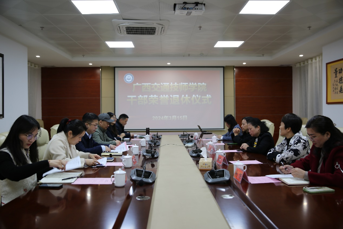 学院本年度成功举办了两期“干部荣誉退休仪式”。学院工会分别于3月15日、7月5日在邕武校区综合楼1524会议室为即将退休的教职工举行了“干部荣誉退休仪式”,学院党委书记赖国秋、副院长兼工会主席黄七零、人事科、党委办公室、学院办公室、基础学科部、汽车工程系、交通工程系、质量监控中心、工会等部门领导出席此次活动,并赠送了纪念品。